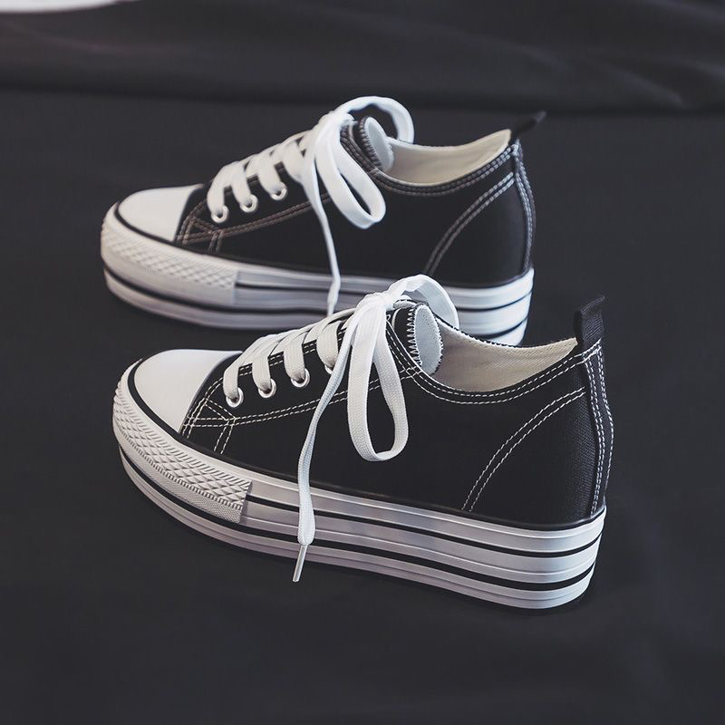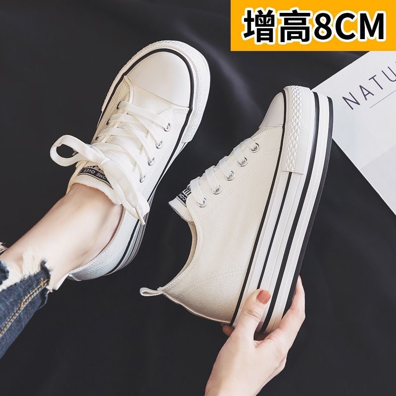 小个子内增高8厘米帆布鞋女2025春夏新款百搭潮厚底松糕板鞋1306