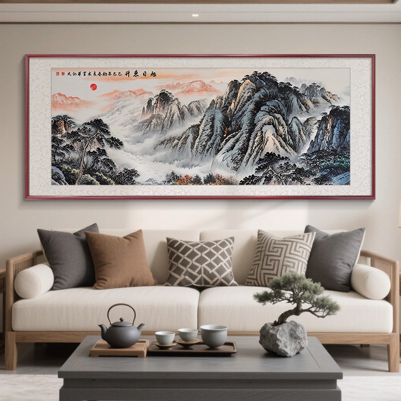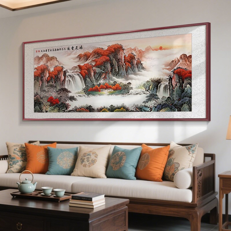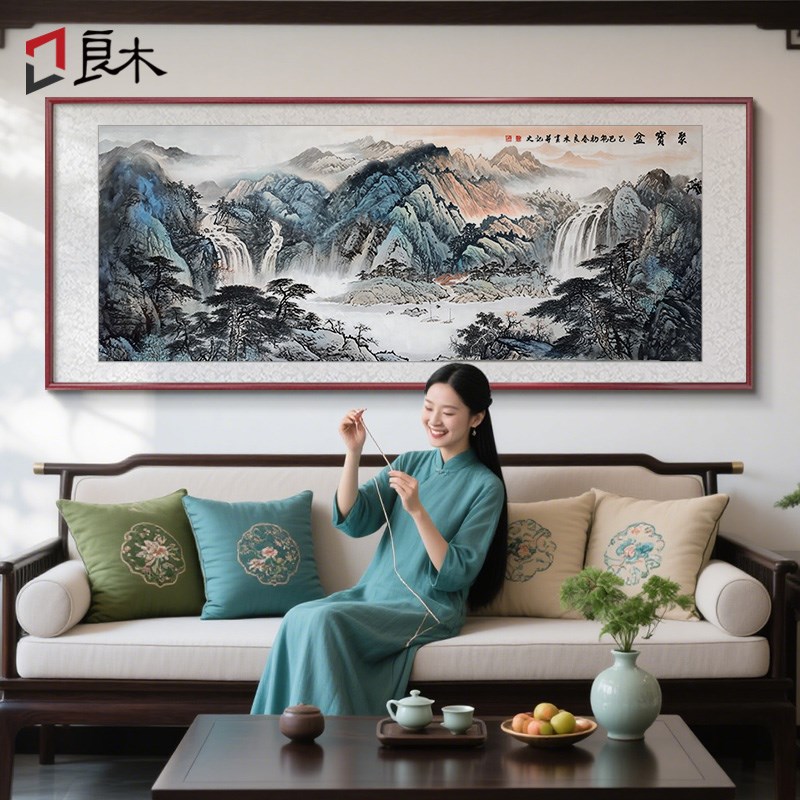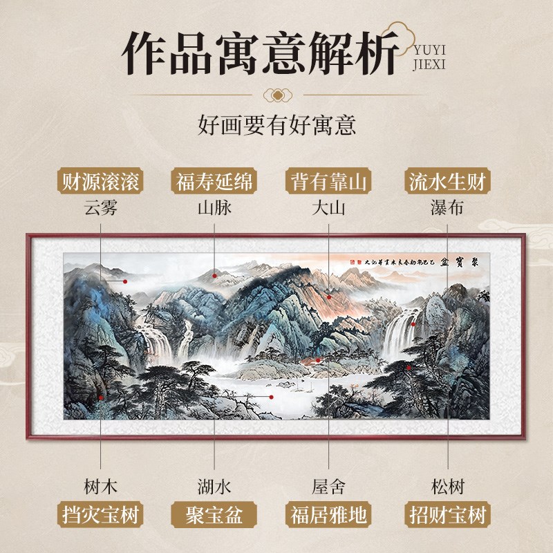 聚宝盆山水画客厅挂画沙发背景墙装饰画纯手绘办公室西墙聚财挂画