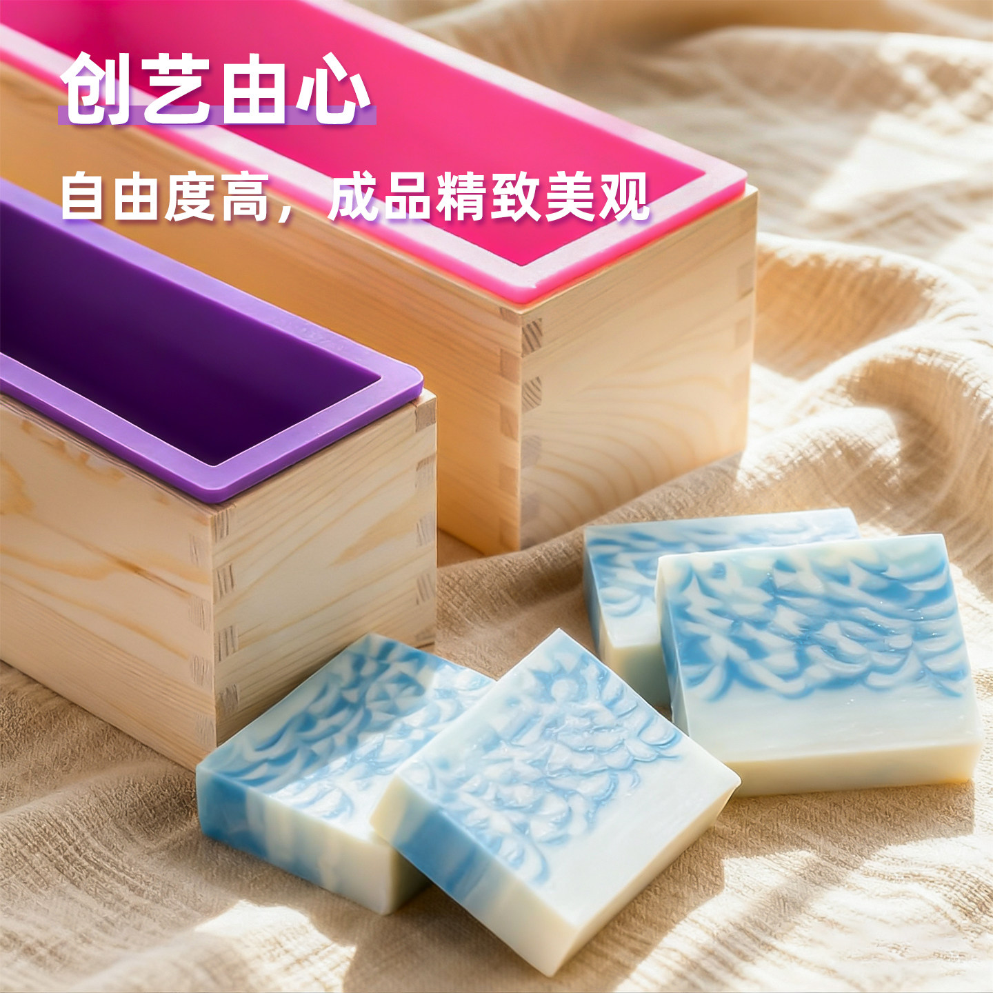 爱皂坊 长方形手工皂硅胶模具+木框标准方块皂矽胶吐司渲染冷制皂