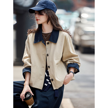 苏醒的乐园2026春季新款撞色短款含莱赛尔风衣外套女装上衣