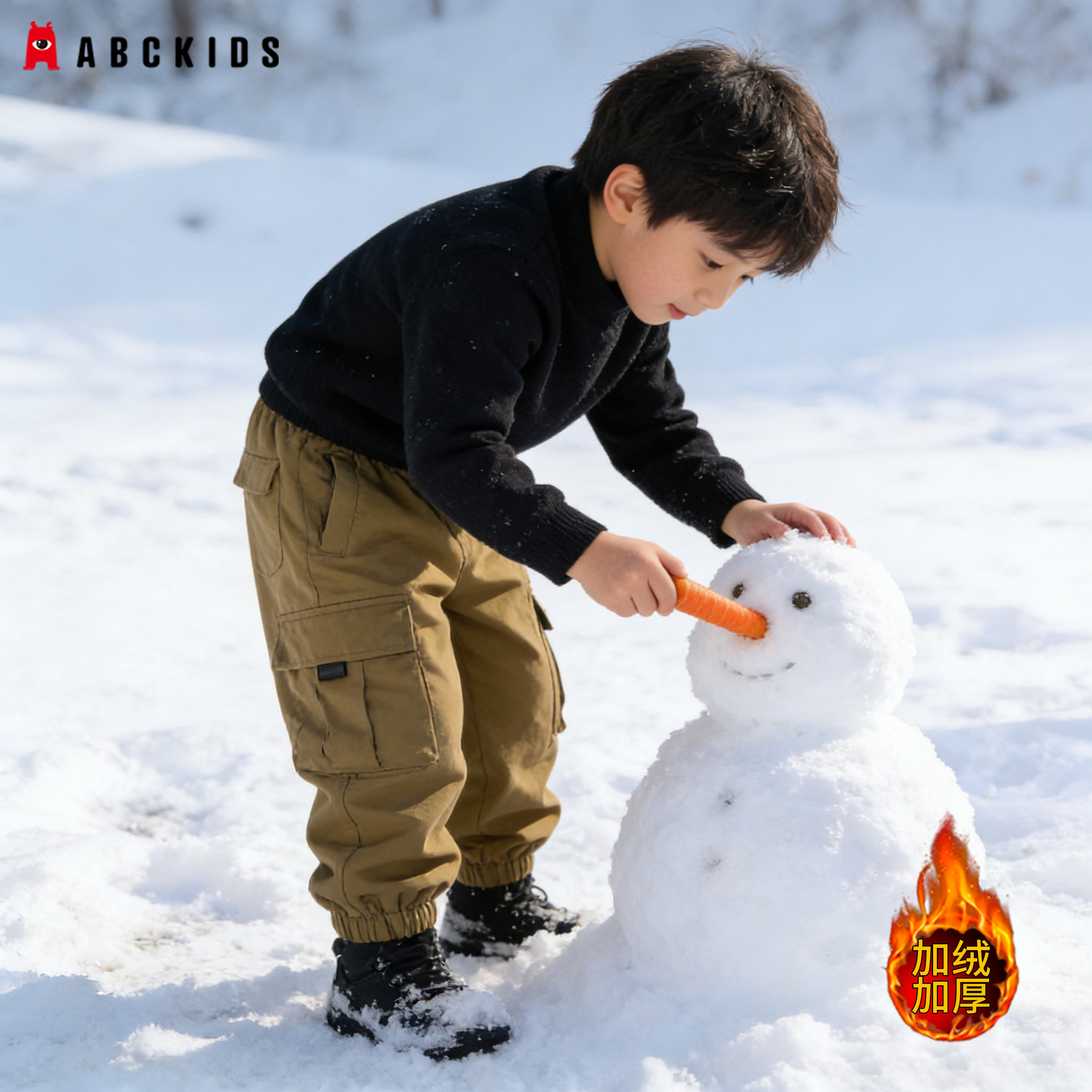 abckids男童加绒保暖工装长裤