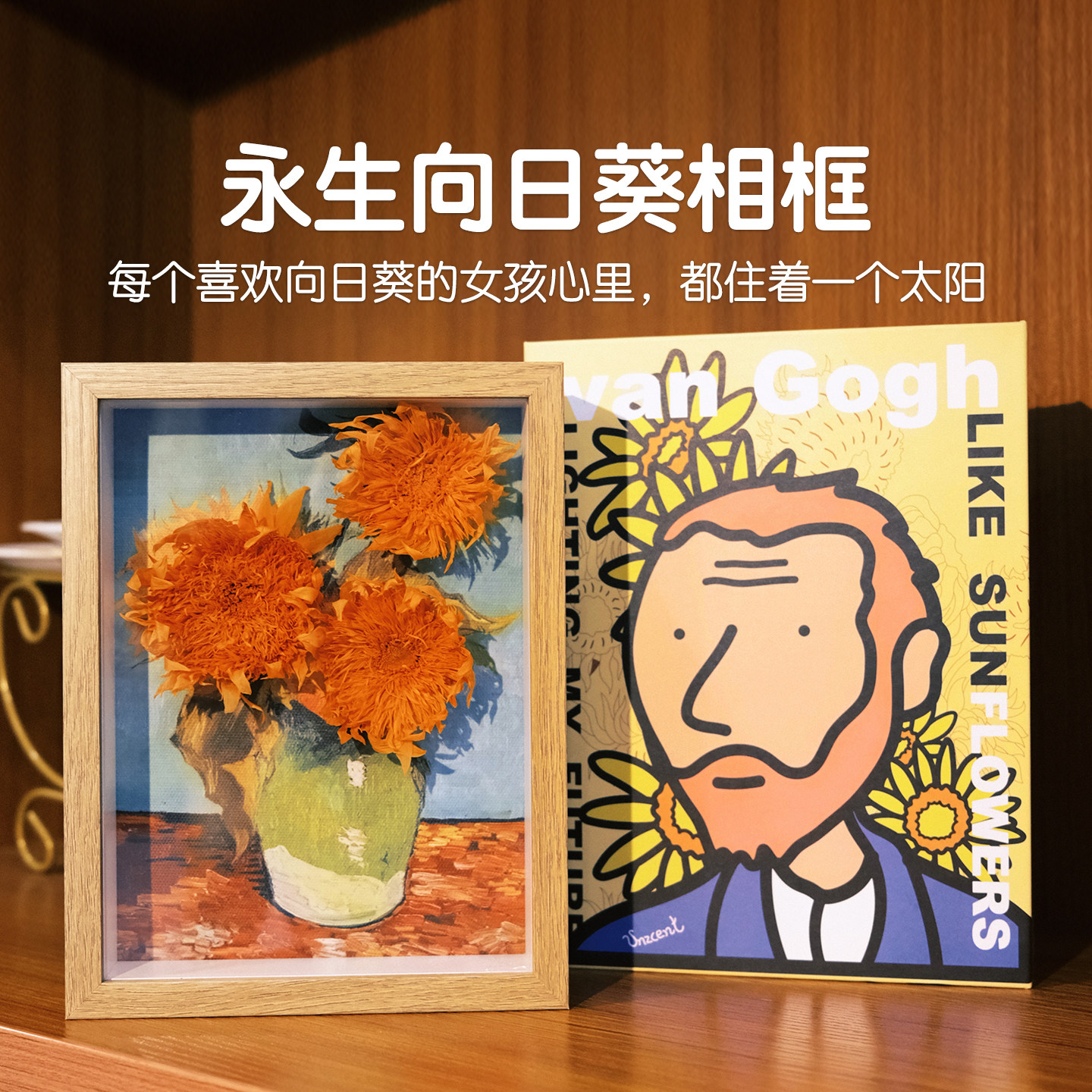 梵高向日葵永生花礼盒高级感相框干花摆件妇女节送女朋友生日礼物