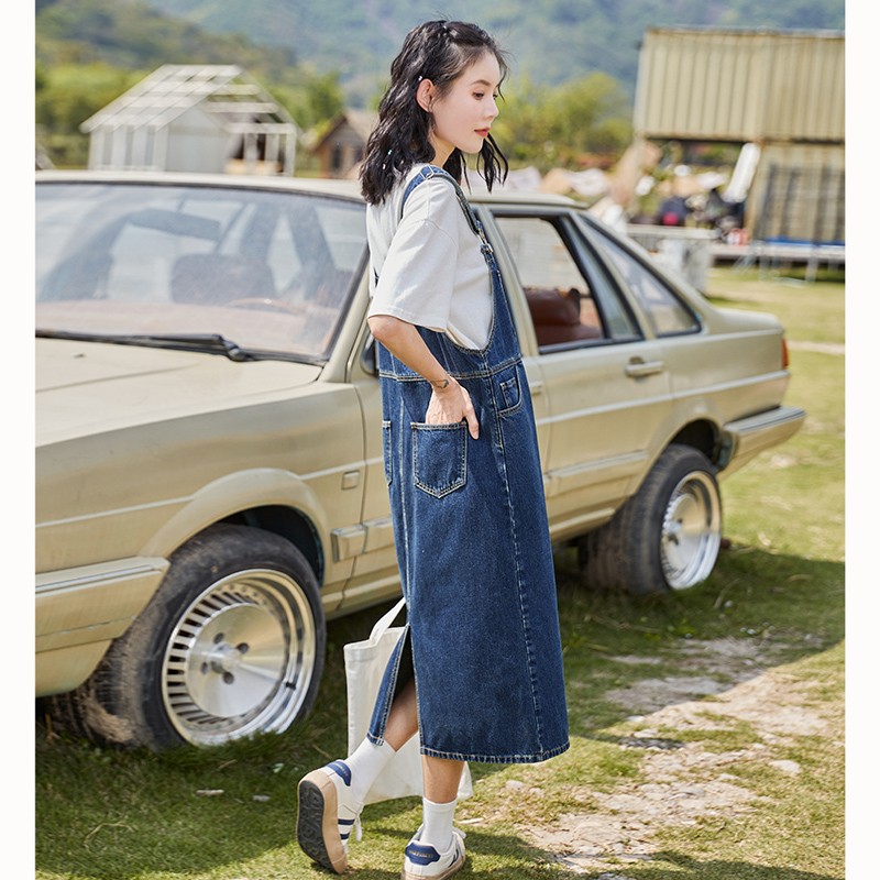 唐狮牛仔背带裙女春夏新款韩版宽松直筒裙中长款半身裙百搭长裙