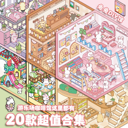 造景贴纸20款套装新款3D微缩场景立体小屋可爱场景韩系手工diy贴画贴纸女孩儿童玩具
