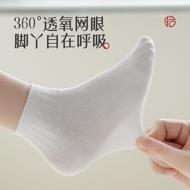拾袜记儿童袜子网眼吸汗防臭短袜