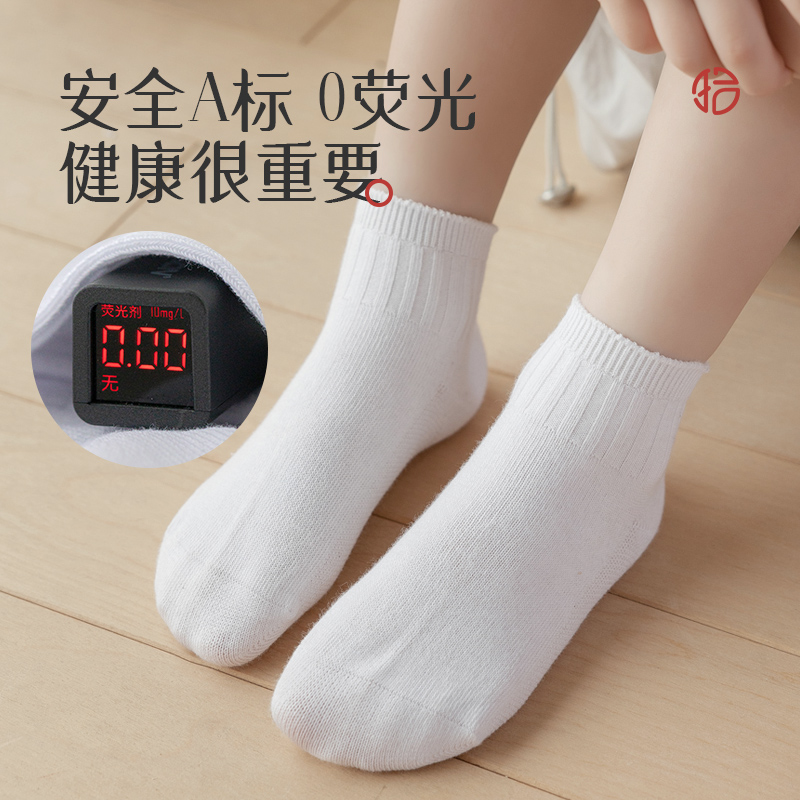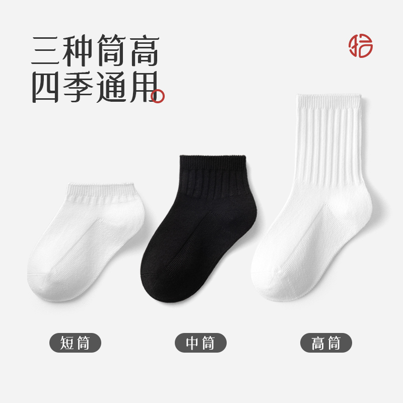学生袜子男春秋款网眼透气纯棉中筒袜抗菌防臭女短袜黑白儿童袜