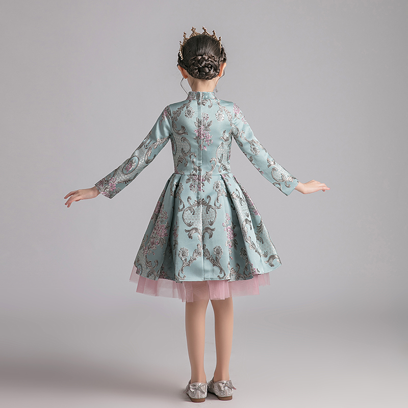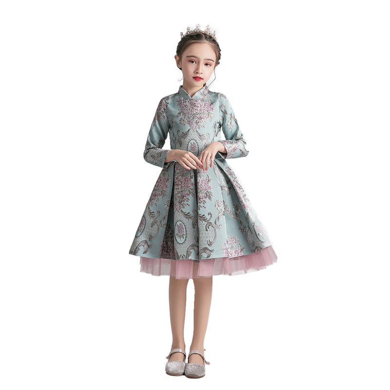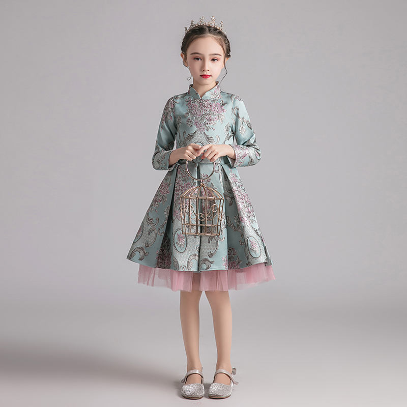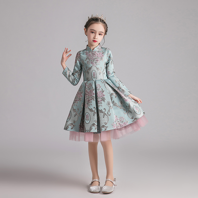 小花童公主裙女童生日走秀中式儿童婚纱礼服主持人钢琴演出服长袖