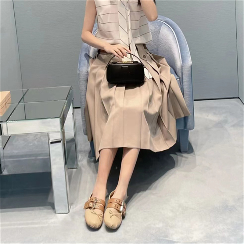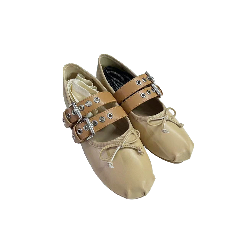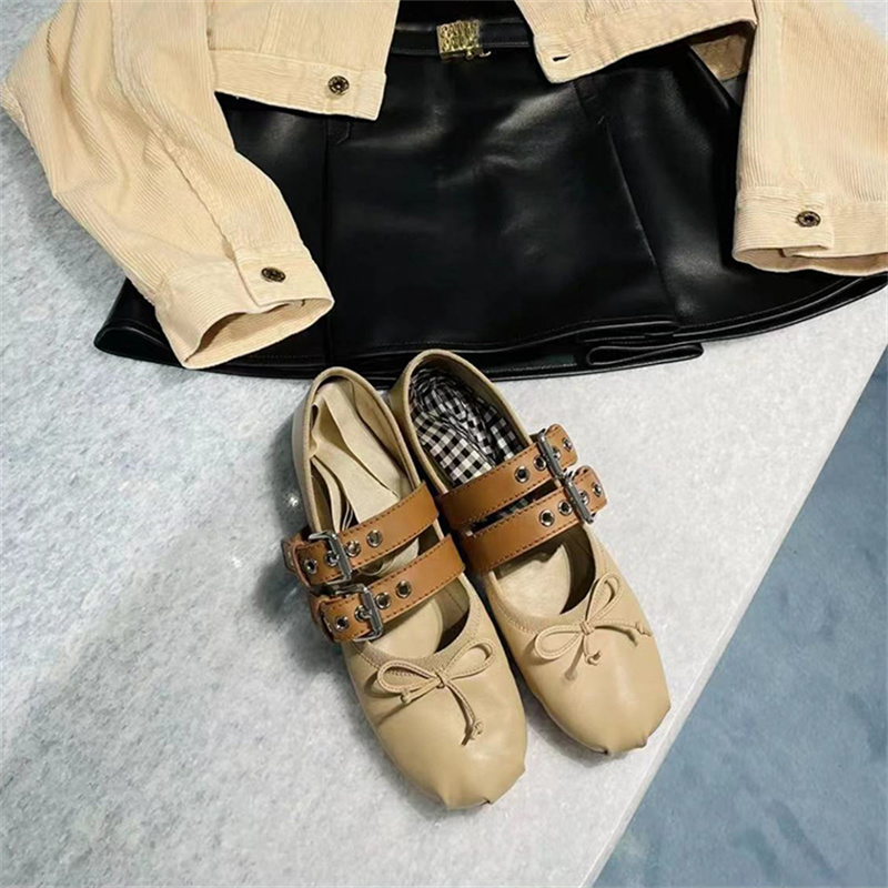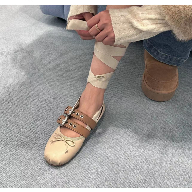 miu风芭蕾舞鞋早春新款绑带浅口百搭圆头平底蝴蝶结内增高女单鞋
