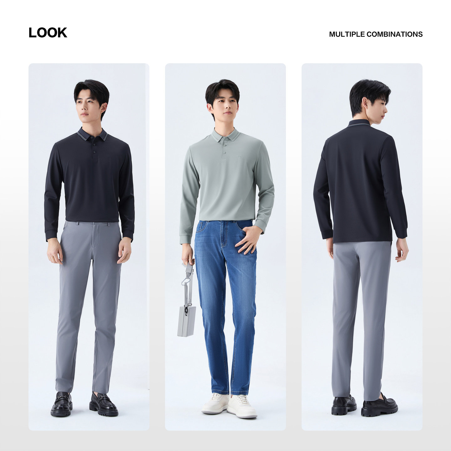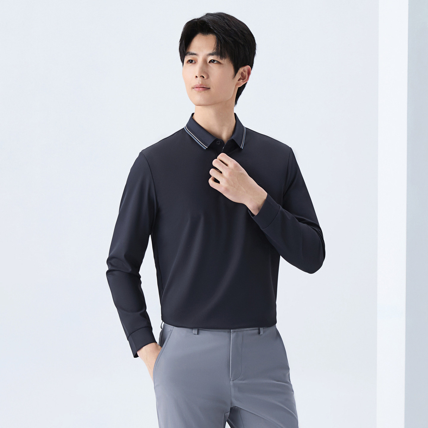 柒牌男士长袖POLO衫华夫格不变形