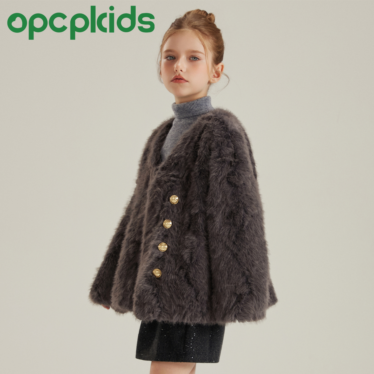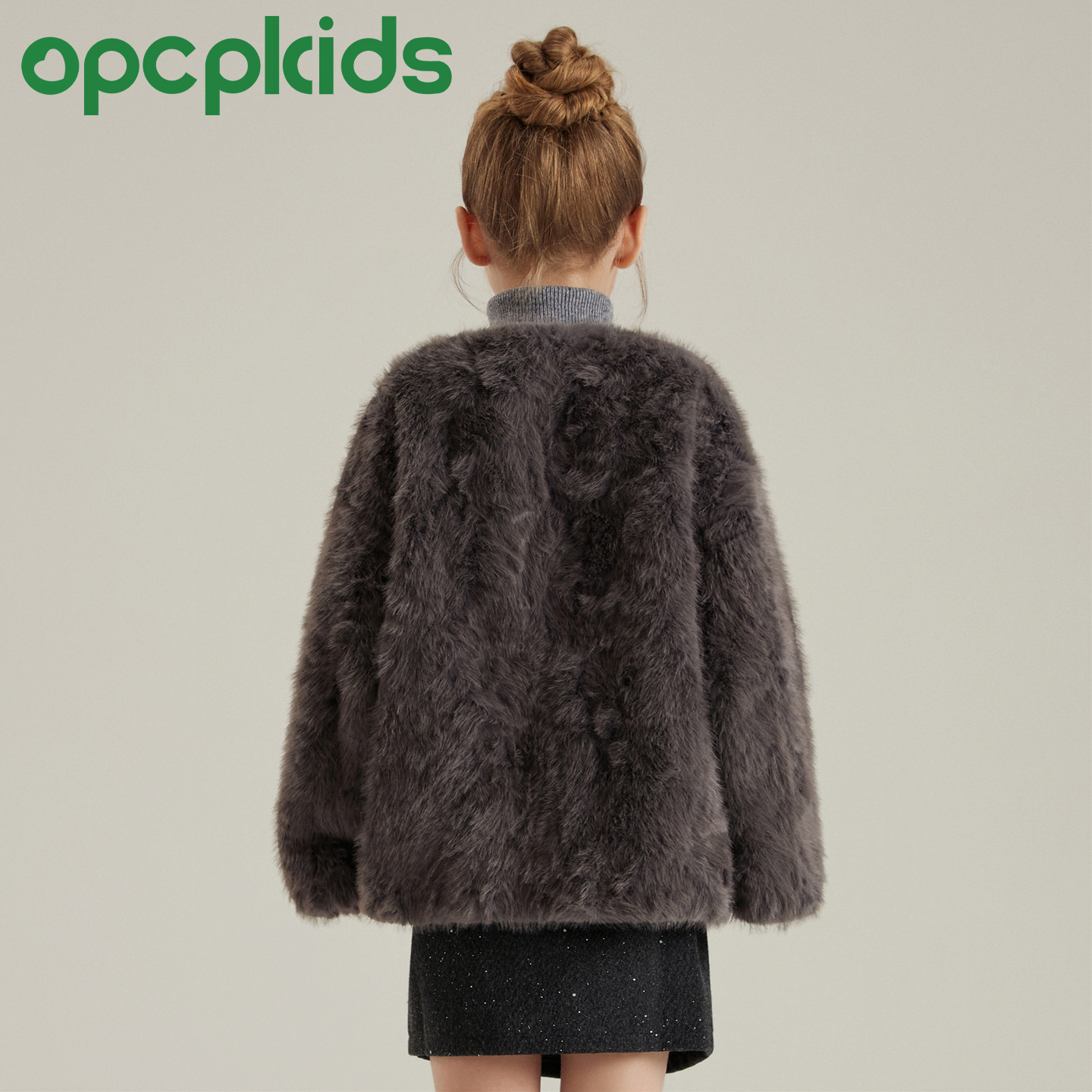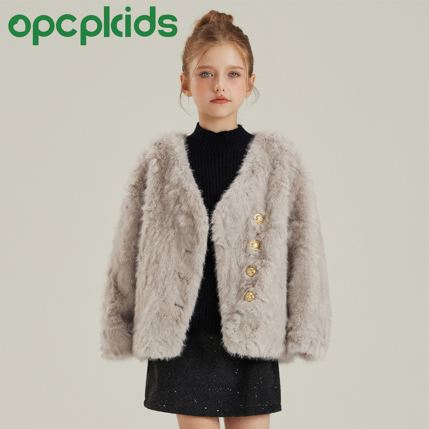 OPCP儿童皮草外套秋冬新款环保小湖羊皮毛一体短款女童毛毛上衣