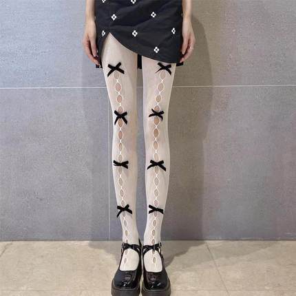 洛丽塔蝴蝶结网袜女 日系JK渔网袜白色连裤袜子性感镂空连裤袜