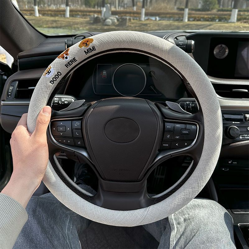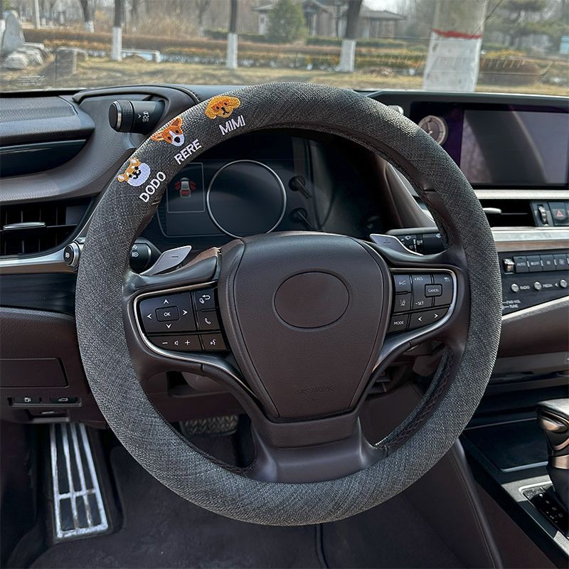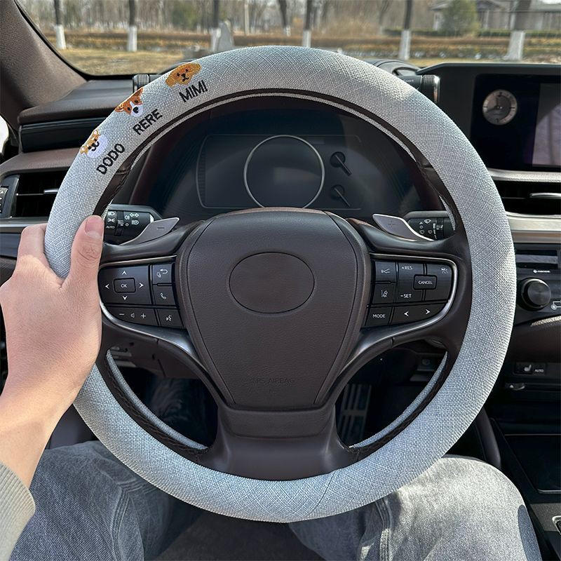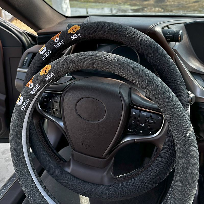方向盘把套新款高质感刺绣布艺防滑吸汗轻薄四季男女通用汽车把套