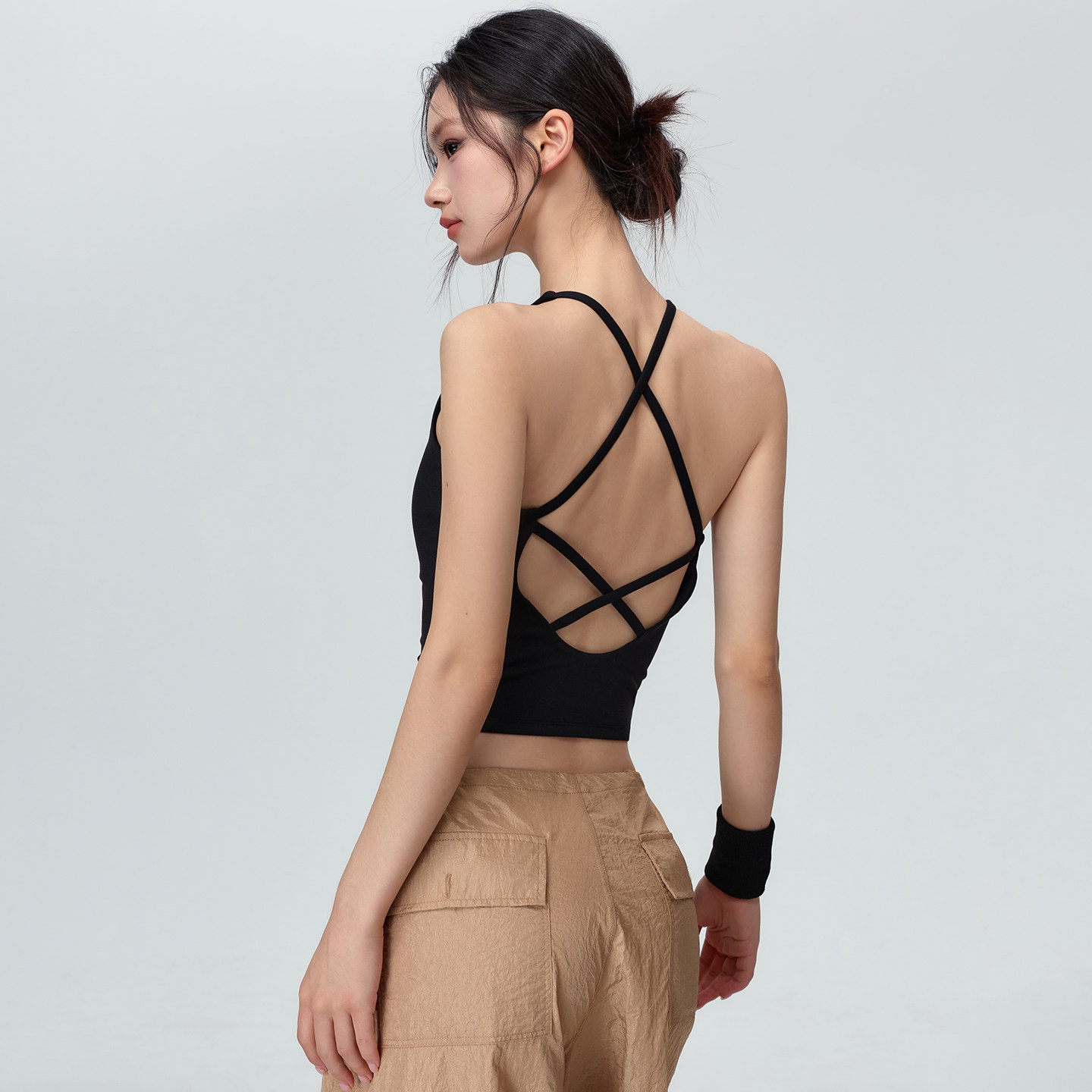 Mitaogirl裸感亲肤运动内衣女交叉美背瑜伽文胸弹力透气健身背心