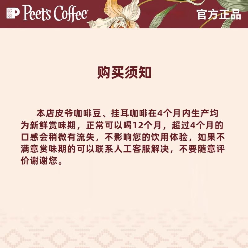 Peets皮爷经典多款新鲜中烘阿拉比卡咖啡豆黑咖拿铁意式拼配250g