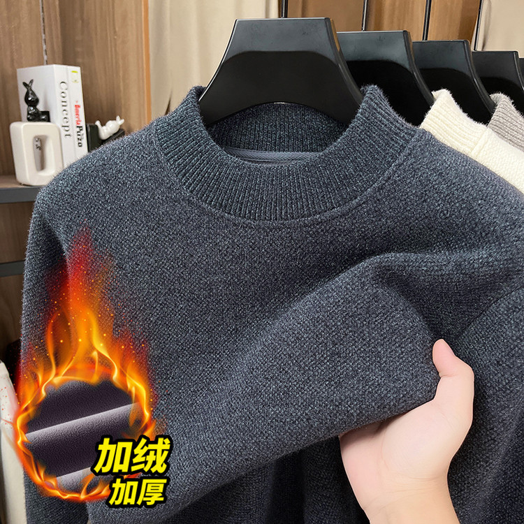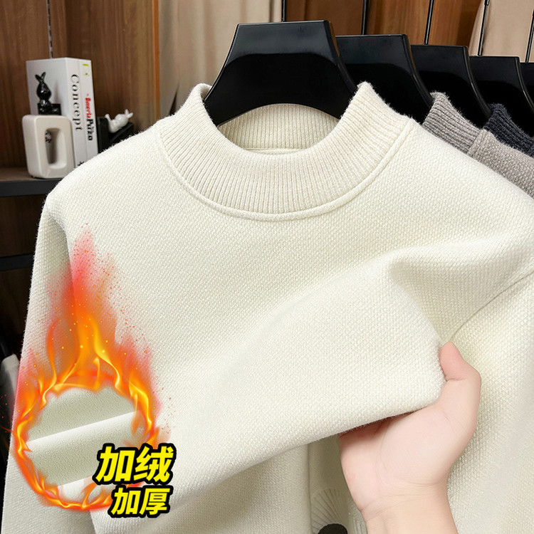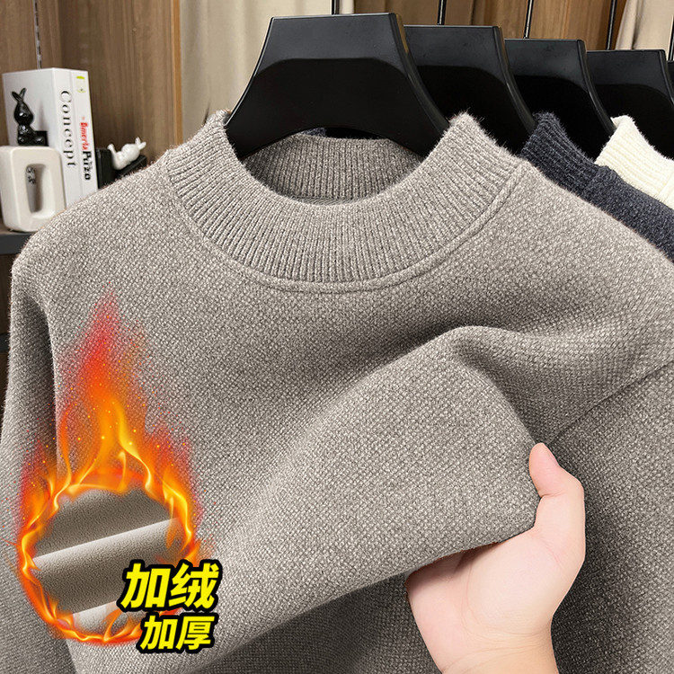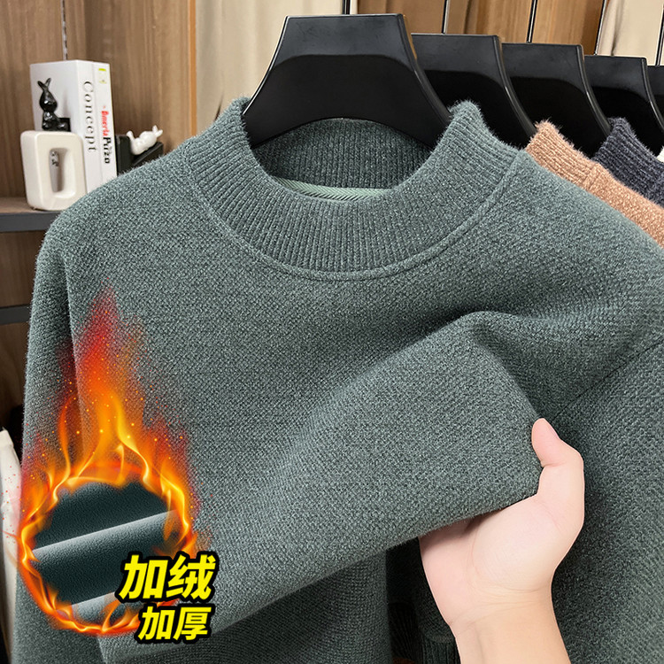 一体绒男士加绒加厚保暖针织打底衫上衣半高领保暖纯色套头毛衣服