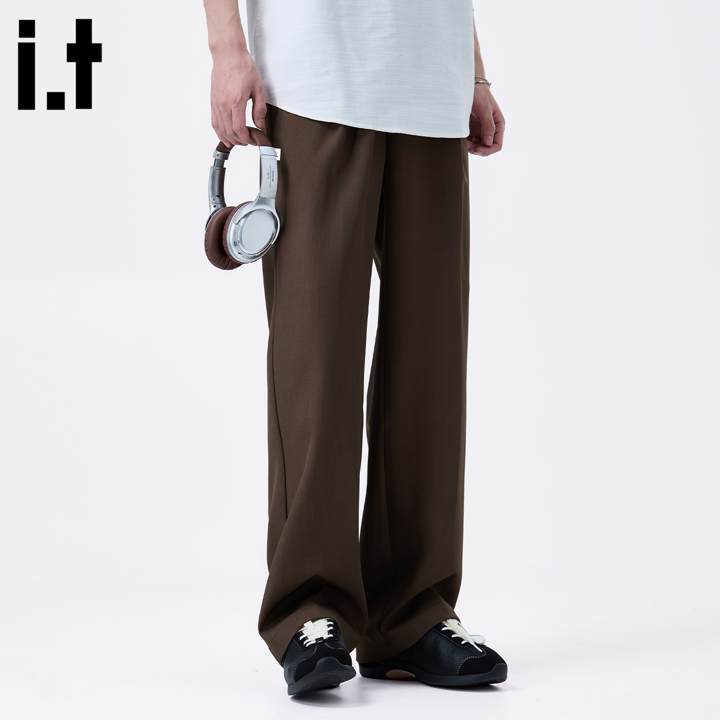 it :5cm/FIVECM咖色垂感褶皱休闲直筒西装裤男款2025秋季宽松裤子