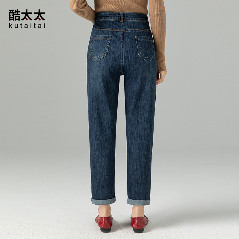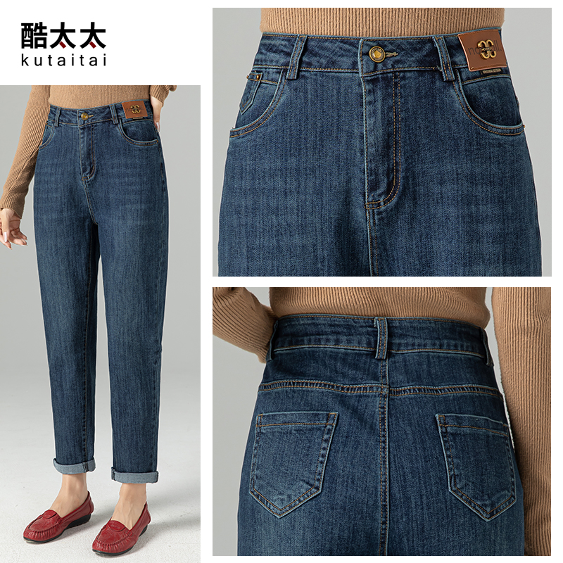 酷太太中年妈妈牛仔裤女春秋高腰老爹裤弹力直筒裤子休闲女裤大码