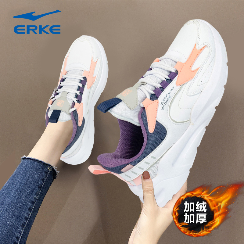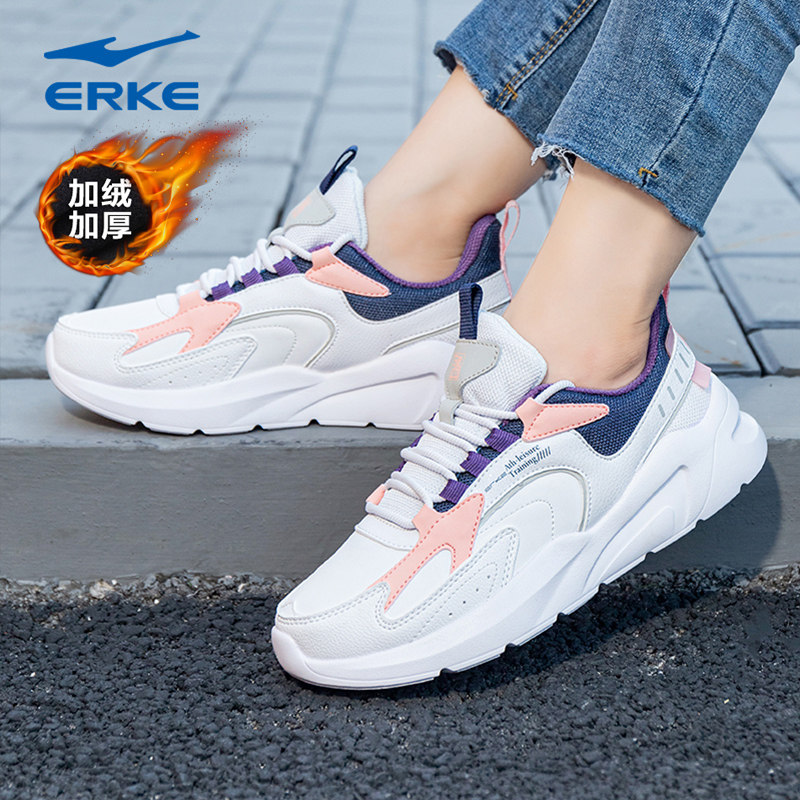 女跑步鞋休闲鞋加绒皮面鸿星尔克