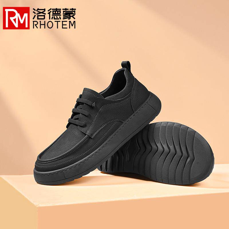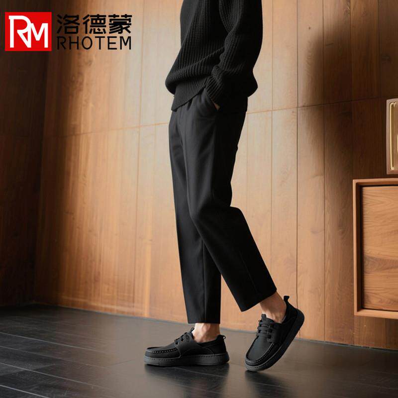 洛德蒙休闲皮鞋男士真皮新款亮皮英伦透气懒人驾车时尚一脚蹬1000