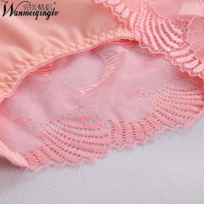 4条装完美情侣蕾丝性感火辣诱惑透明内裤 女士纯棉提臀中腰无痕