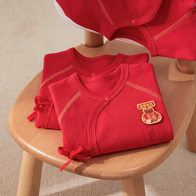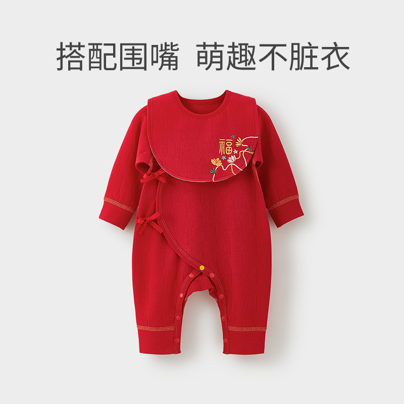 微狮牧尼宝宝满月服纯棉连体衣婴儿过年喜庆衣服春秋婴幼儿拜年服
