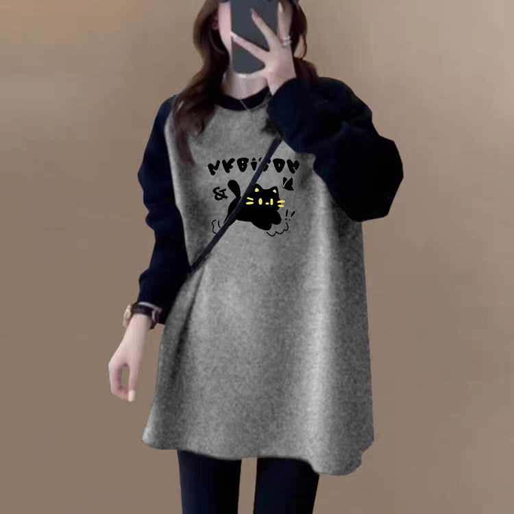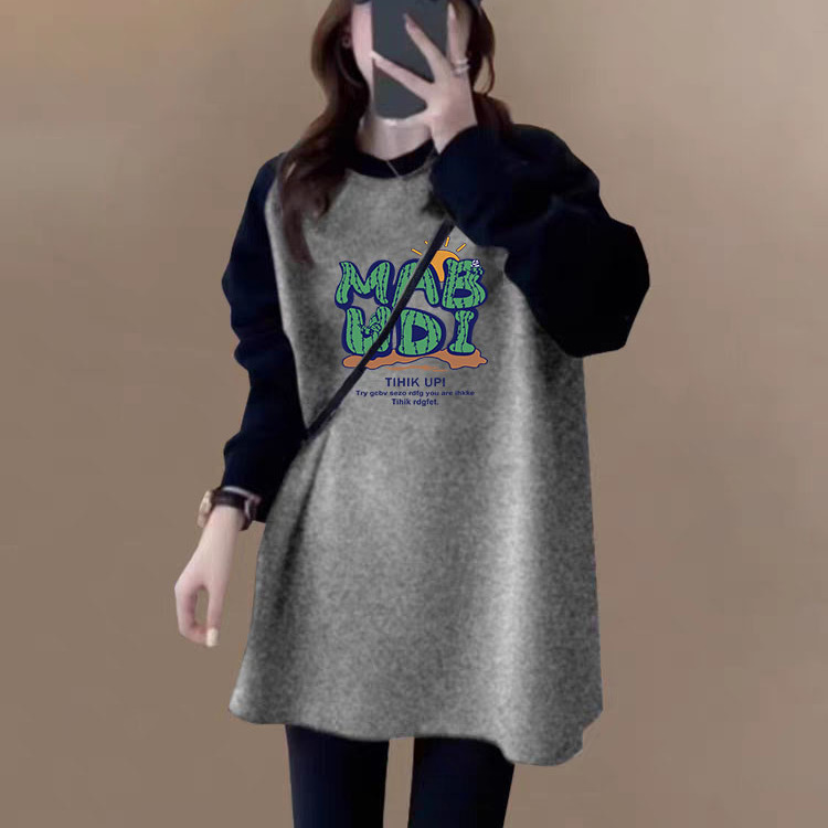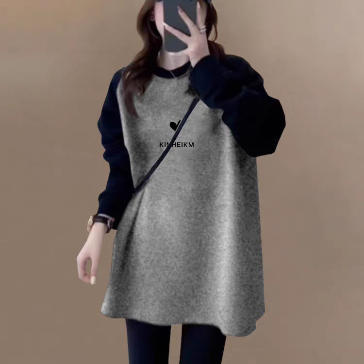 撞色插肩长袖t恤女2025秋冬新款纯棉内搭中长款上衣宽松打底衫ins