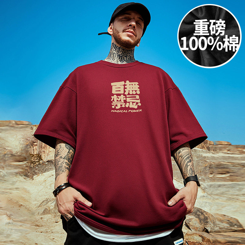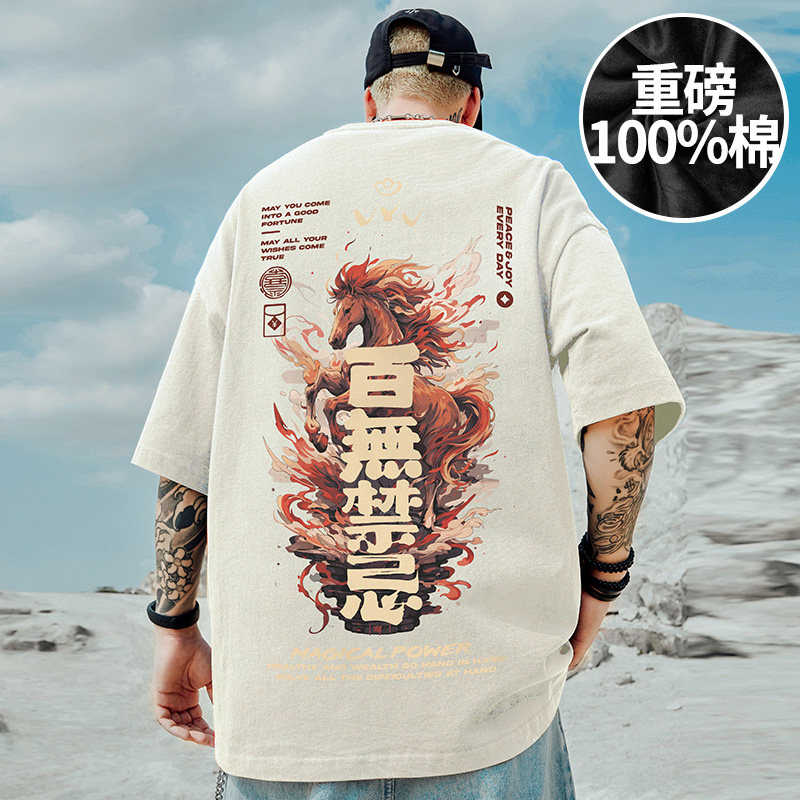 2026重磅潮牌宽松T恤美式短袖五分袖纯棉国潮本命年大码男装夏季