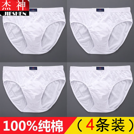 男士内裤纯棉男款男生100%全棉纯白色三角短裤头中老年爸爸底裤衩