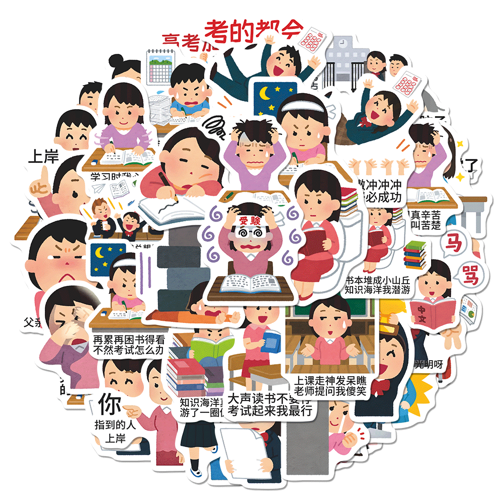 124张日本小人学习表情包贴纸趣味校园考试周状态抽象手账贴画diy