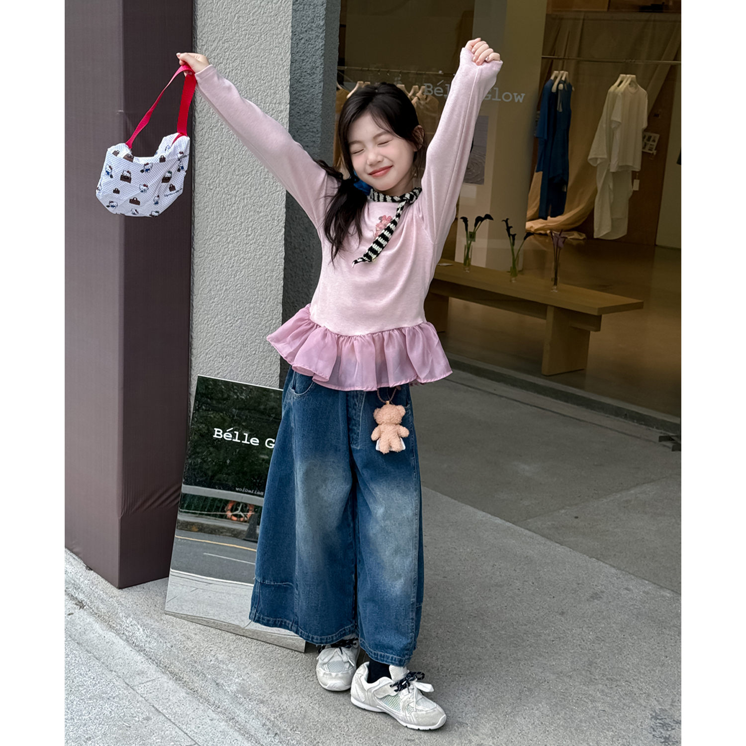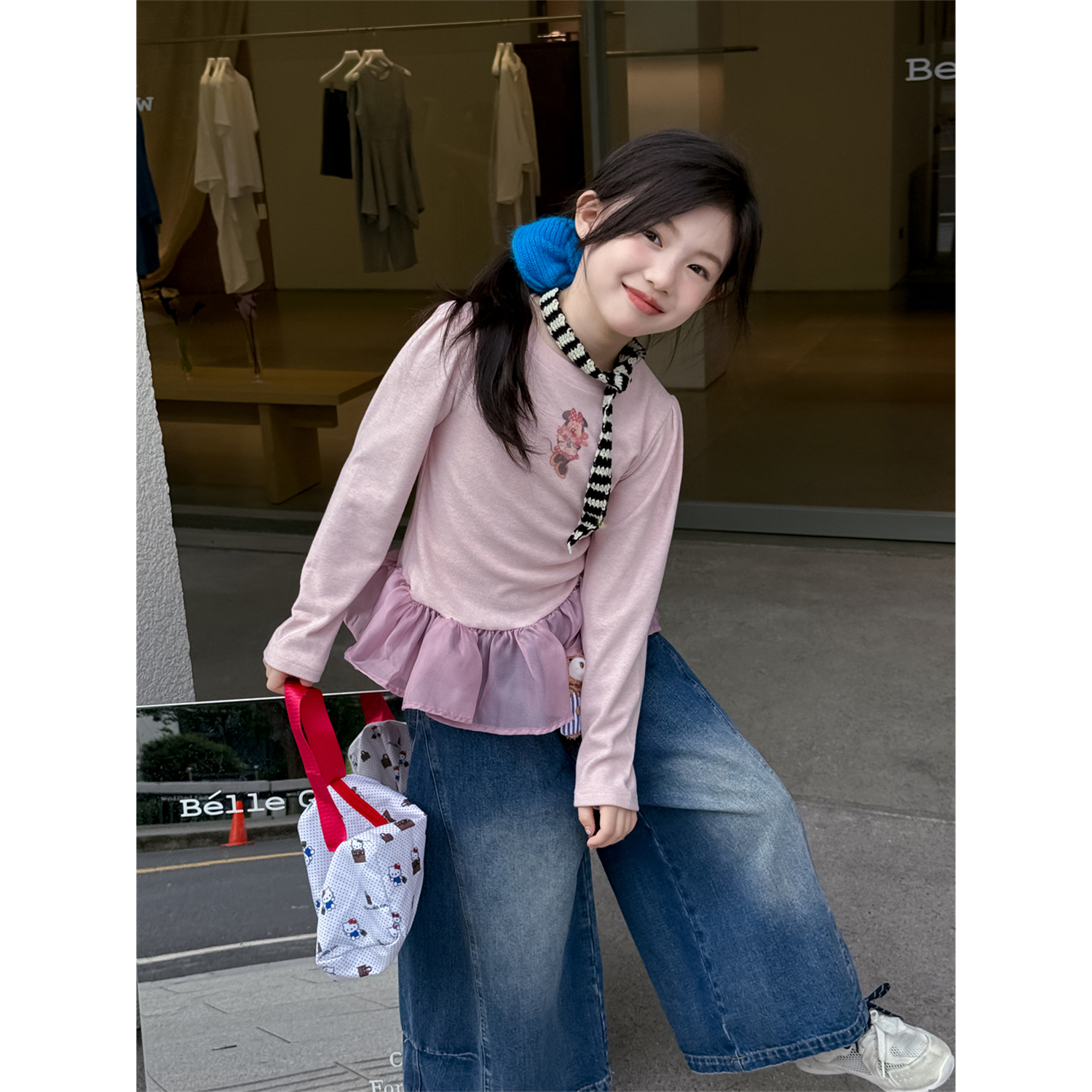 女童韩版花边下摆T恤打底衫上衣