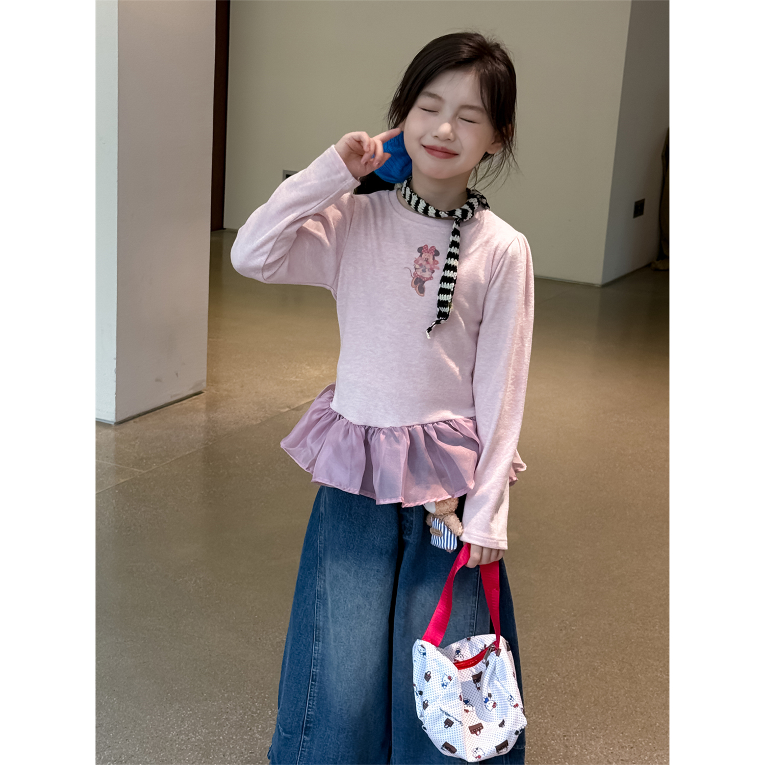 2025秋季女童韩版花边长袖T恤儿童洋气时髦打底衫上衣童装秋装潮
