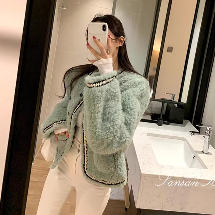 韩国东大门2024冬季气质减龄小香风毛绒圆领系扣羊羔毛皮草外套女