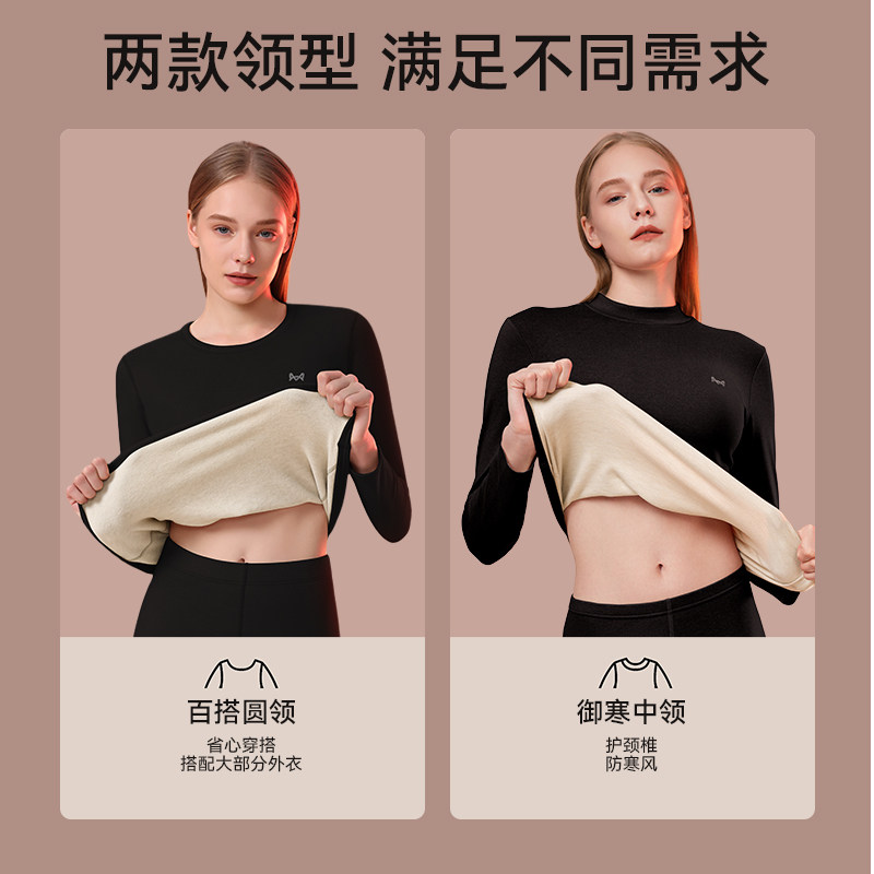猫人羊绒蚕丝保暖内衣套装冬季发热加绒加厚秋衣秋裤内搭打底黑色