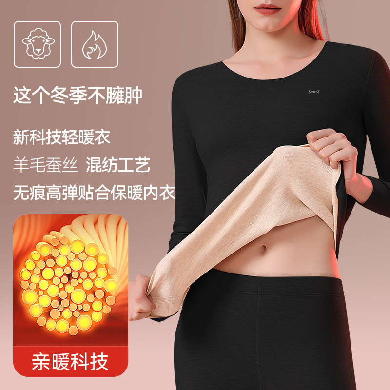 猫人羊绒蚕丝保暖内衣套装