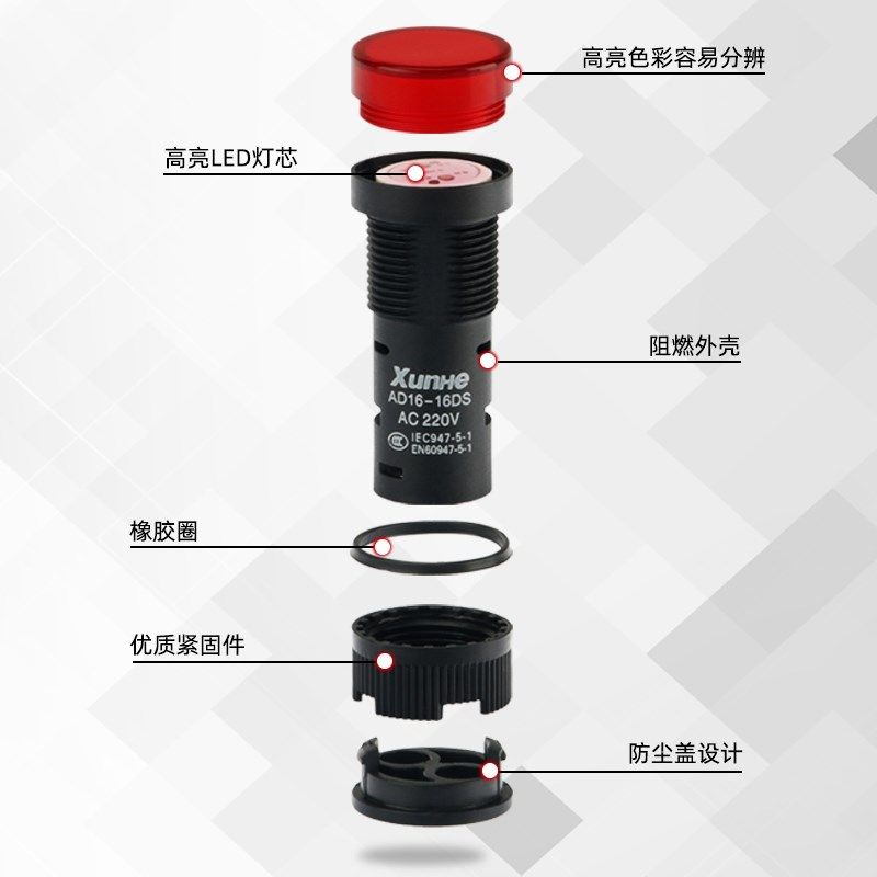 LED工作指示灯 电源信号灯AD16-16C 红黄绿蓝色16mm12V 24V 220V