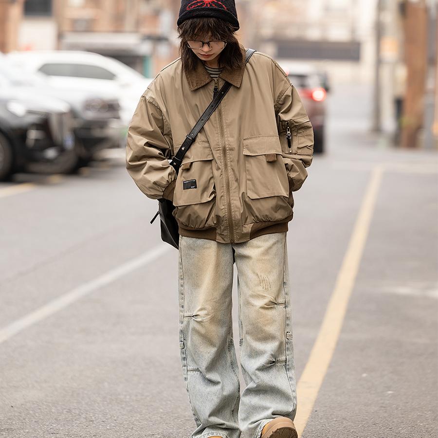 弎狸TIP 美式复古猎装多口袋飞行员夹克男女日系翻领宽松外套春秋