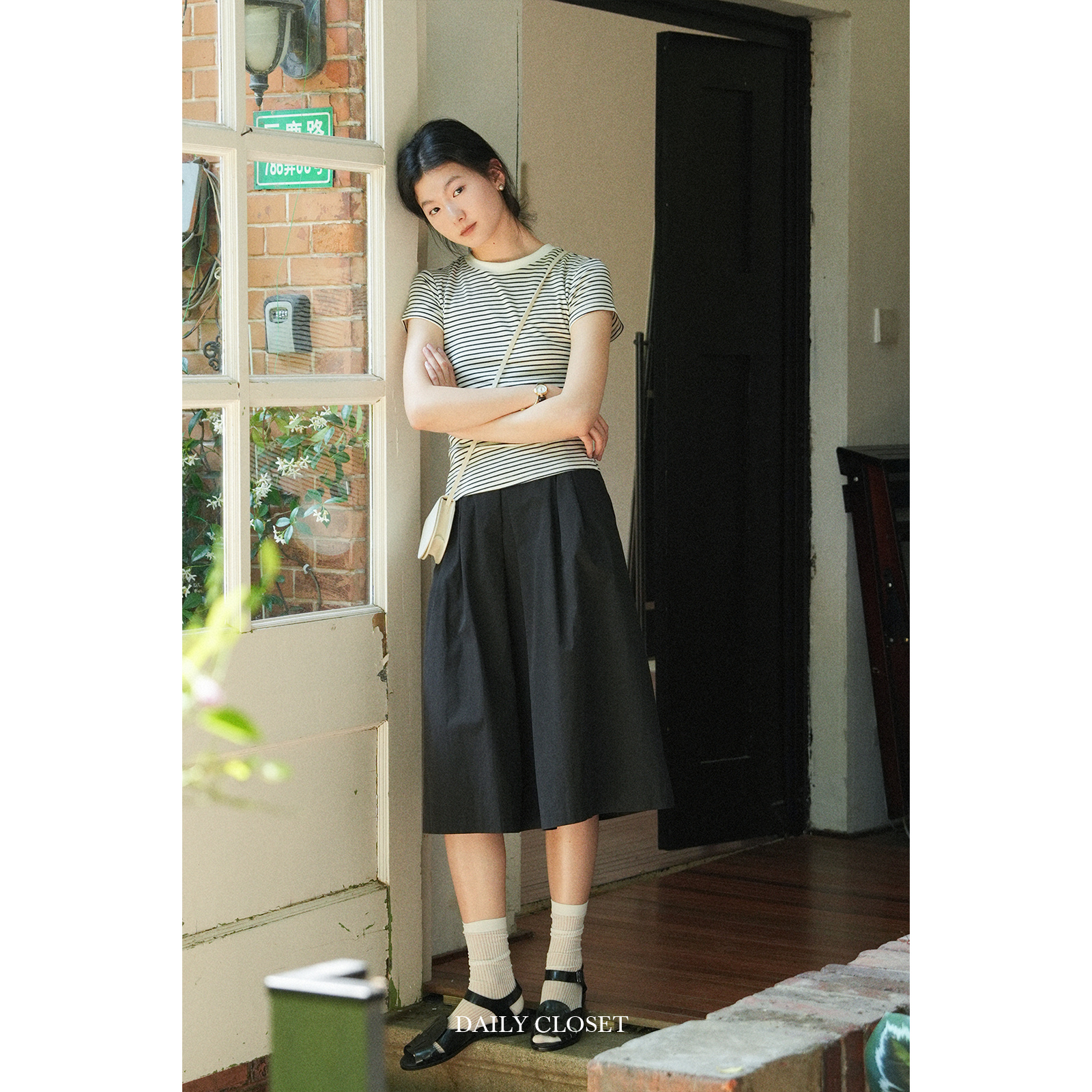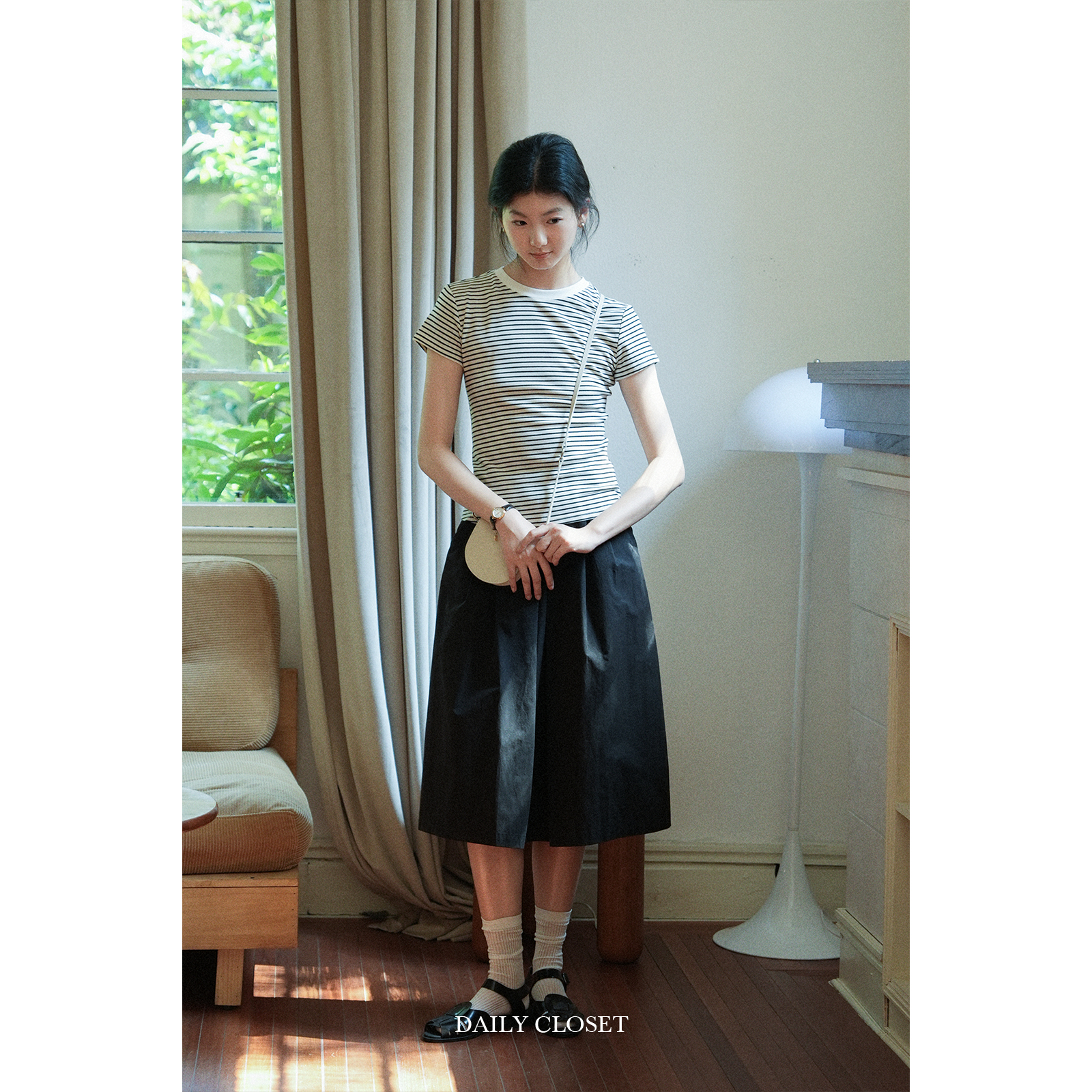DAILY CLOSET 经典百搭好穿a字伞裙夏季纯棉女士半身裙中长款高腰