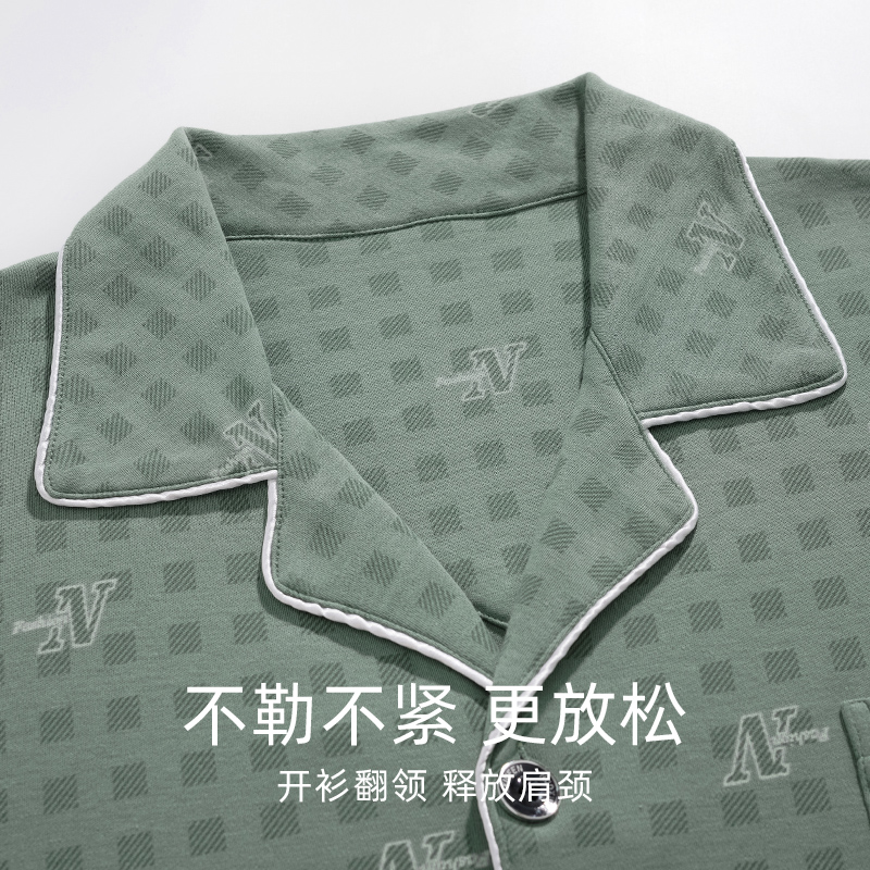 男士睡衣春秋长袖长裤纯棉套装秋中年休闲舒适开衫翻领全棉家居服