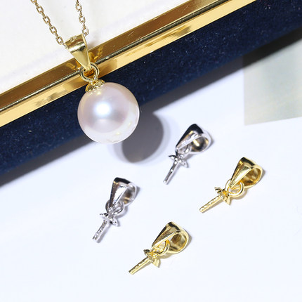 DIY珍珠吊坠配件 S925纯银项坠头托 吊坠瓜子扣空托