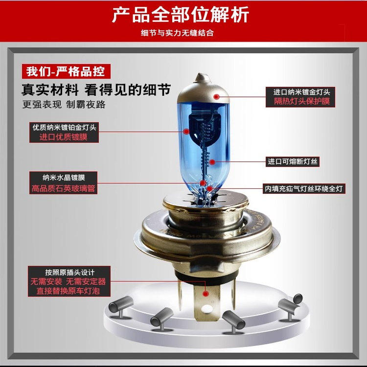 汽车氙气灯泡增亮疝气灯12v远近一体前大灯h4近光h7远光1超亮100w