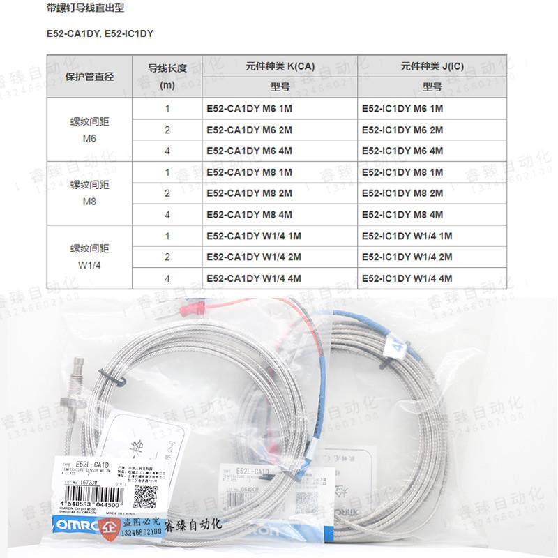 欧姆龙原装正品铂电阻PT100 K型热电偶E52L-CA1D M6 2M E52L-P6D