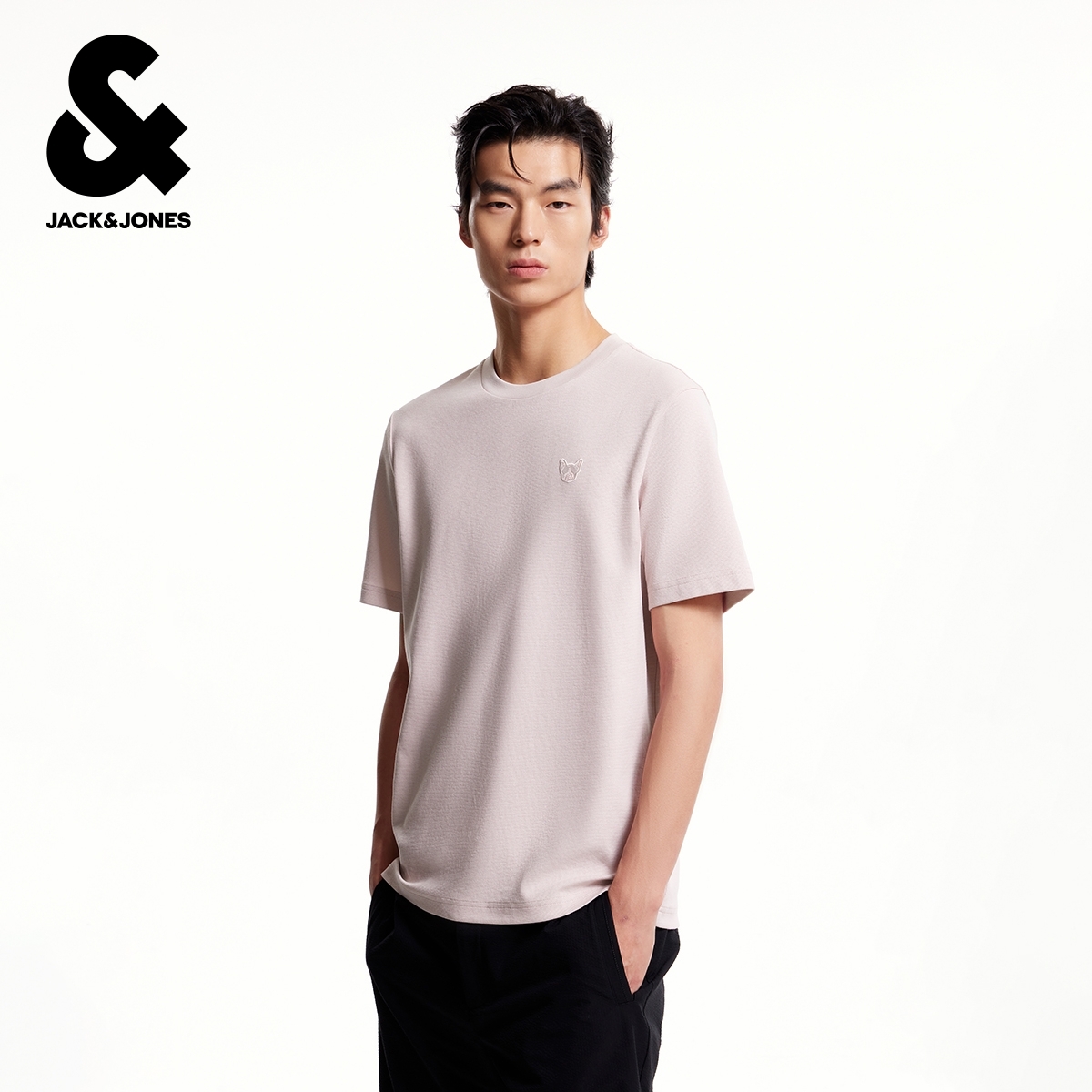 杰克琼斯男装夏季新款男士短袖T恤男款简约舒适法斗犬刺绣上衣男
