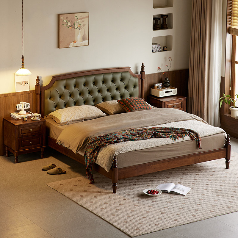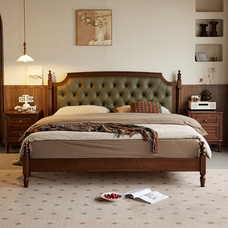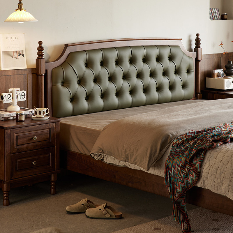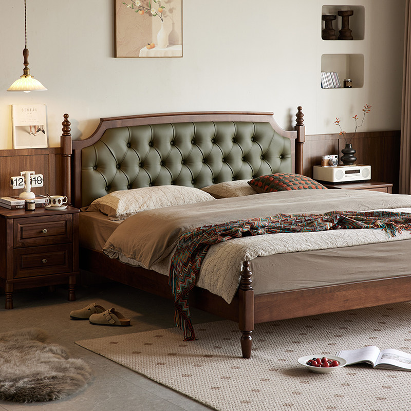 yamoo北美黑胡桃木床北欧简约1.8米实木床主卧真皮软包双人床婚床