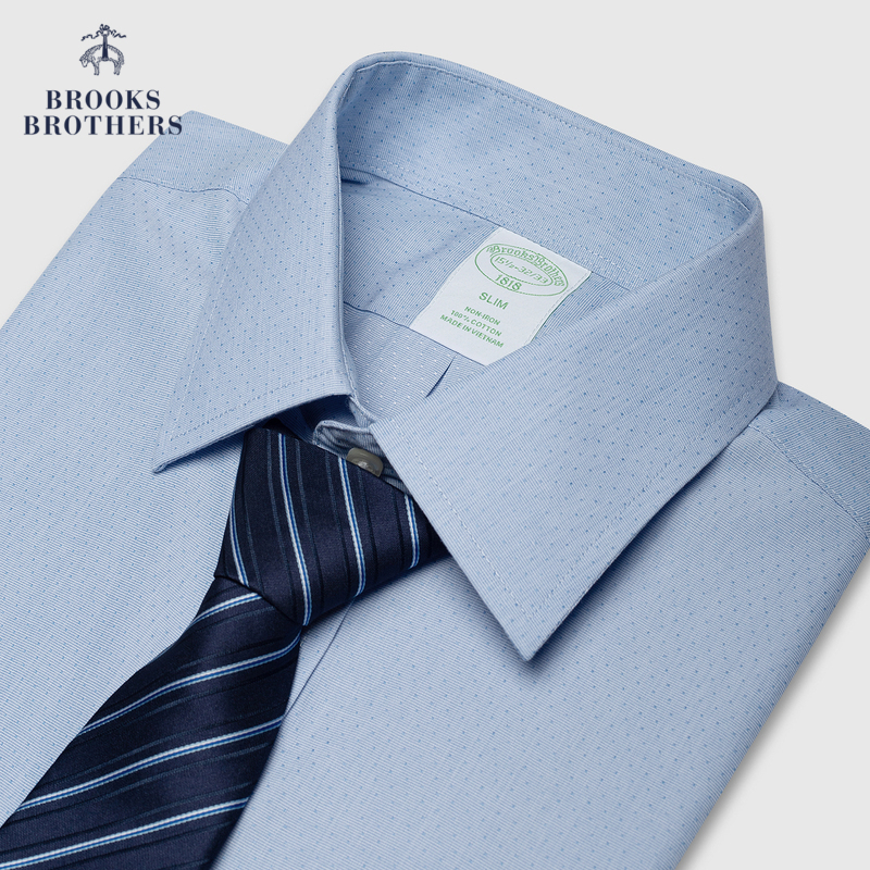 [易打理]Brooks Brothers/布克兄弟男春夏修身版修身提花正装衬衫