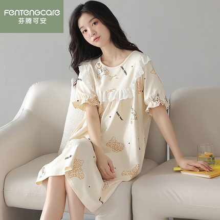 芬腾可安纯棉睡裙女夏季短袖甜美卡通公主风中裙可外穿家居服睡衣