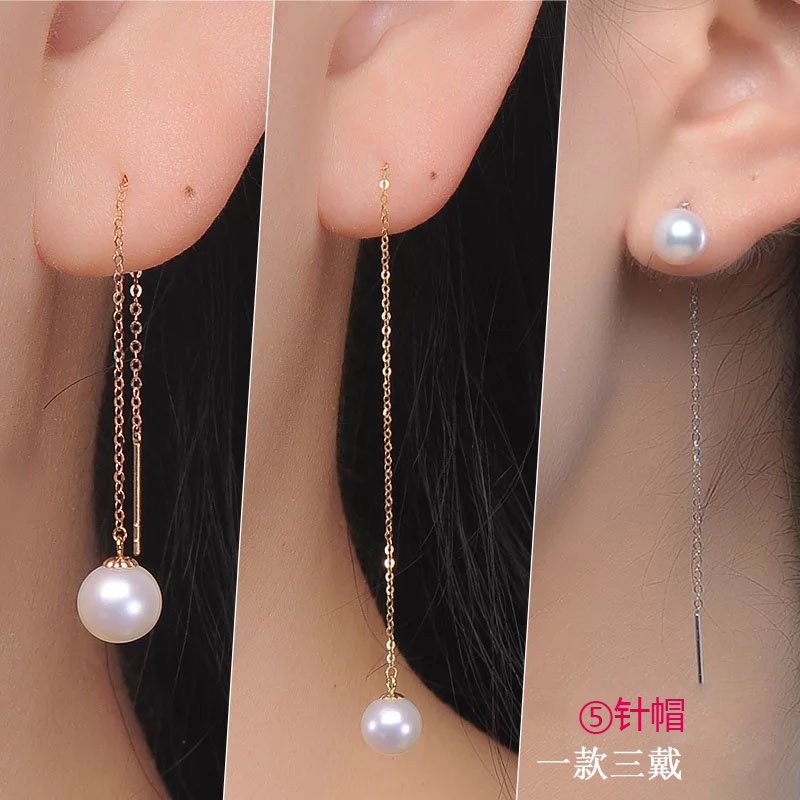 18k金万能耳线diy配件多功能蜜蜡翡翠平安扣珍珠耳垂耳坠空托耳环