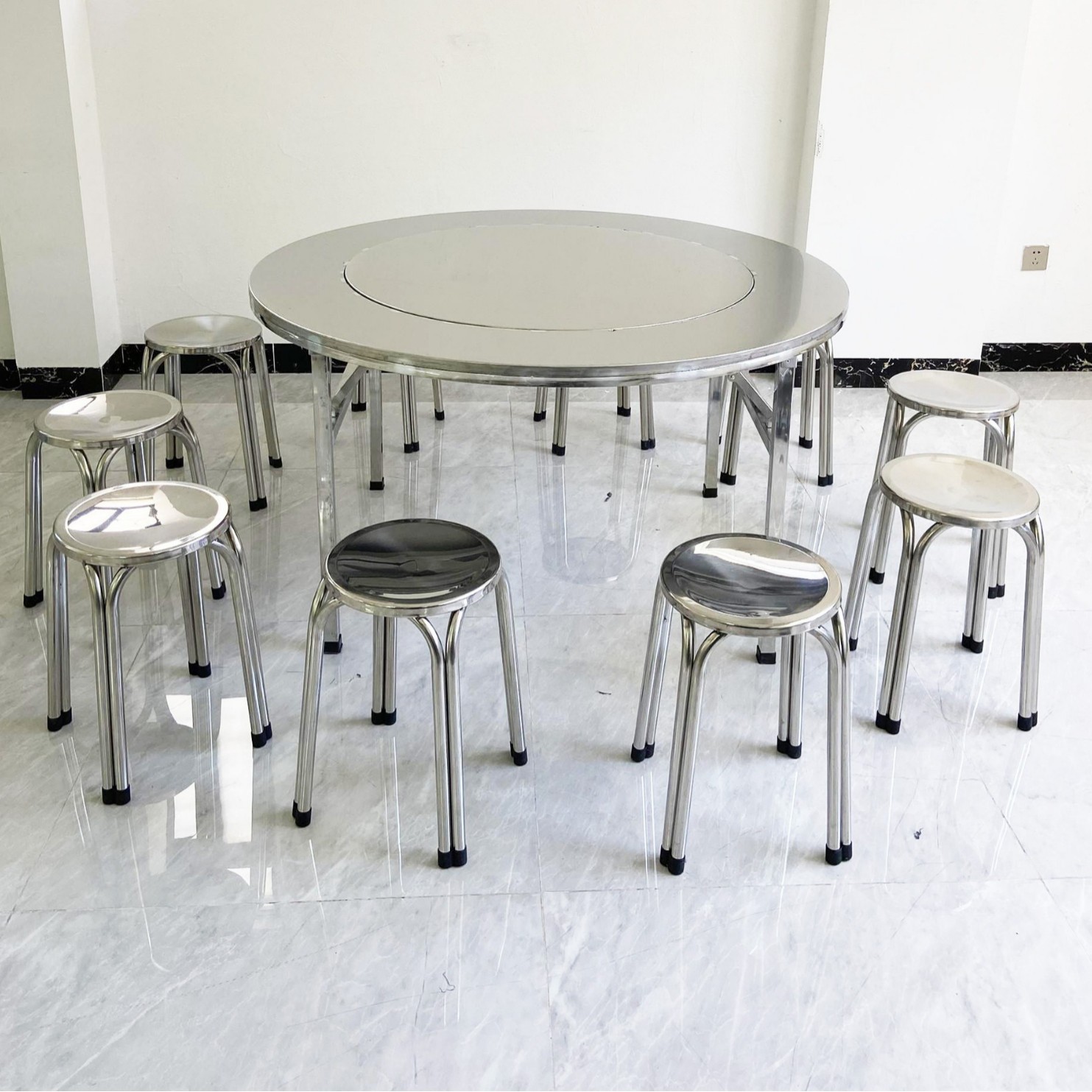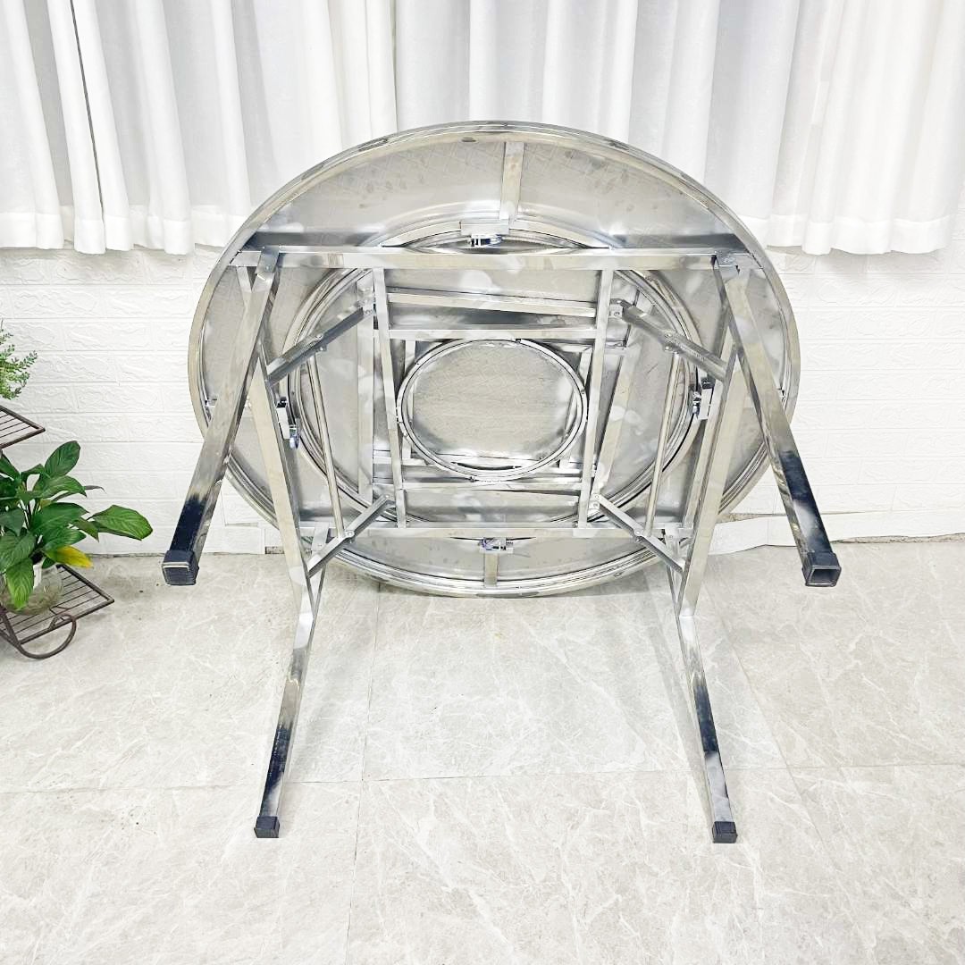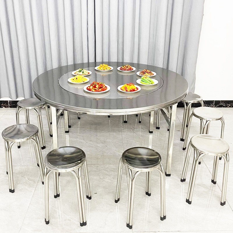 不锈钢可折叠圆桌带内置转盘家用餐桌排挡夜宵烧烤食堂加厚台桌子