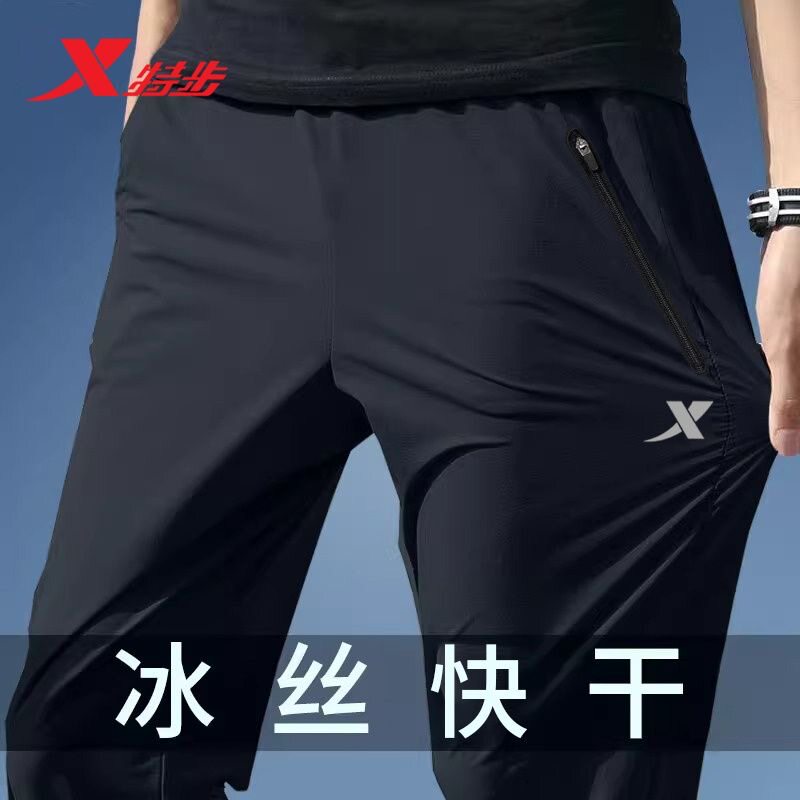 特步运动裤冰丝男裤2026夏季男士灰色薄款长裤旗舰店速干直筒裤子