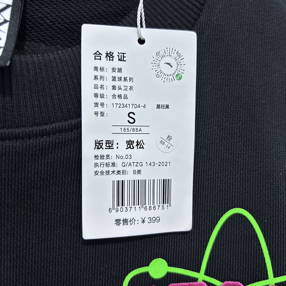 安踏正品冬季休闲针织透气棉质保暧青年宽松男运动卫衣172341704