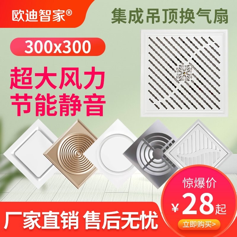 集成吊顶换气扇300x300厨房卫生间大功率超薄静音抽风排气扇30*30